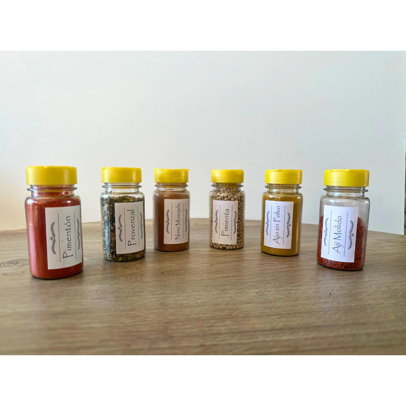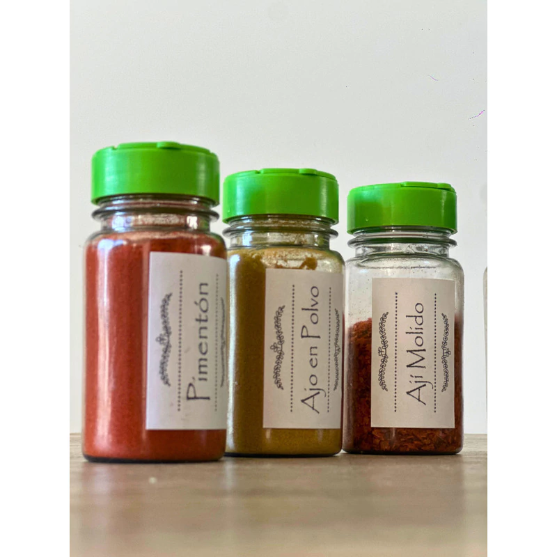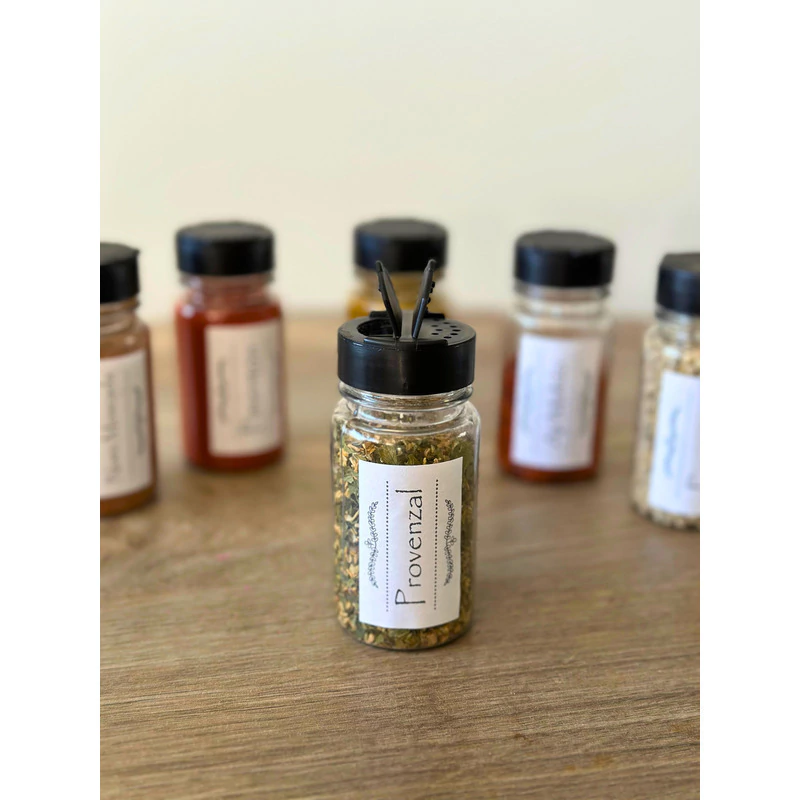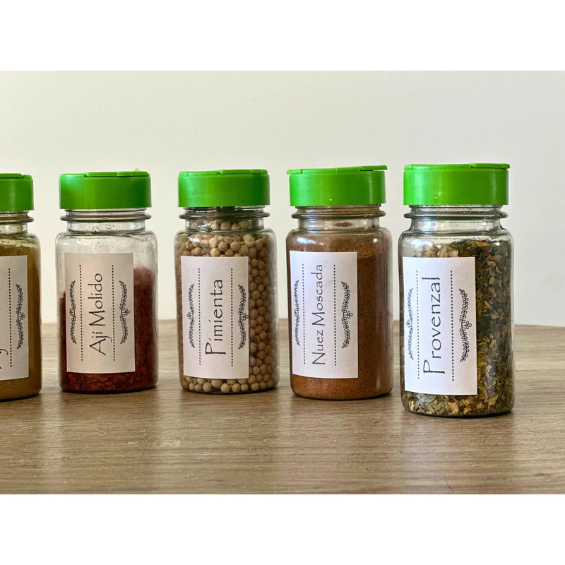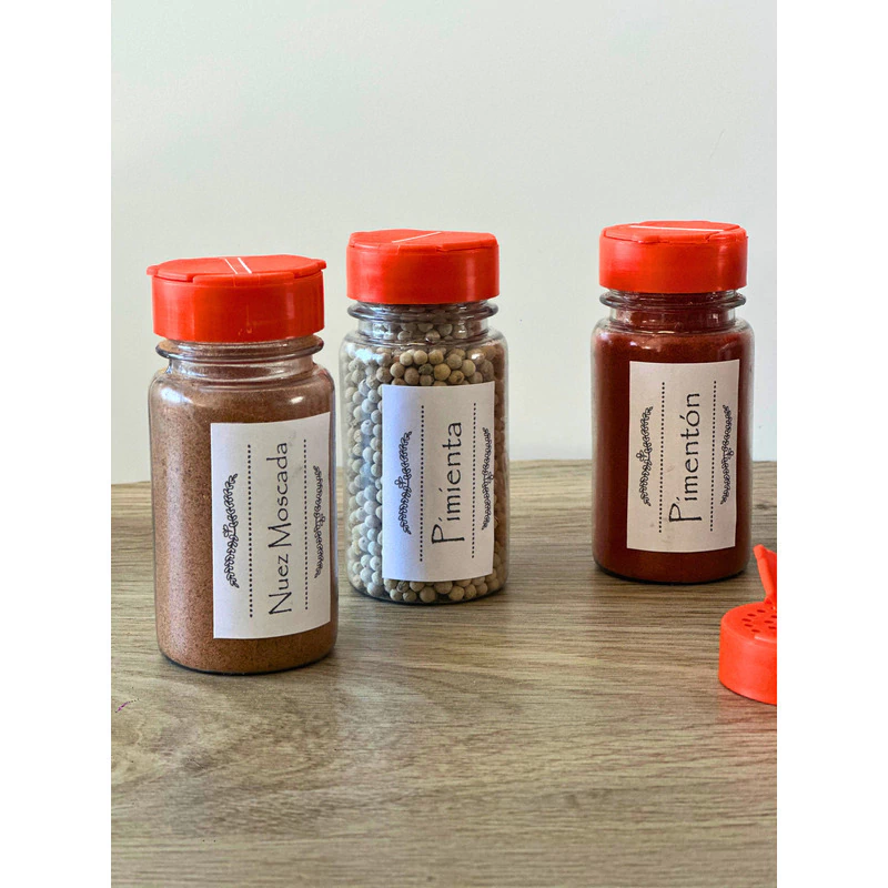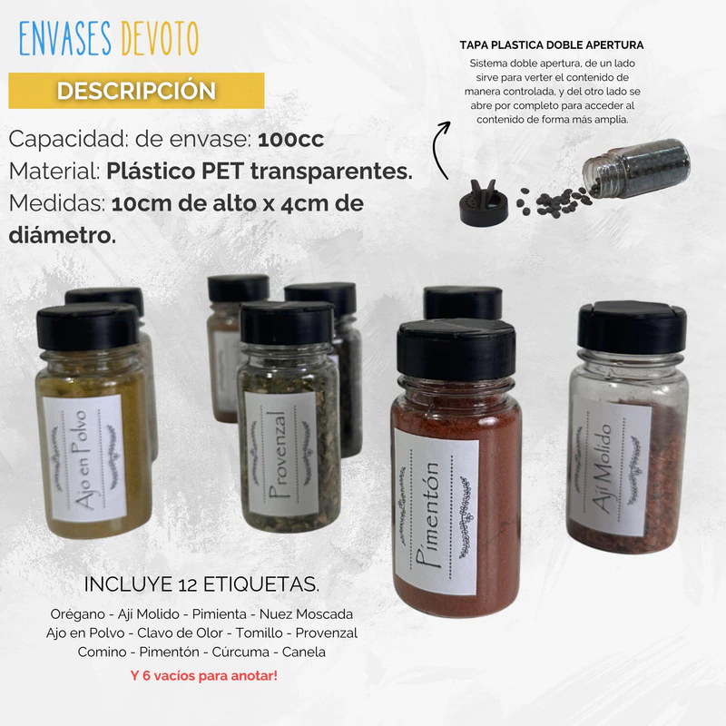 Conjunto de 10 botellas de condimentos de 100ml cada una, diseñadas con tapa doble para mantener la frescura.