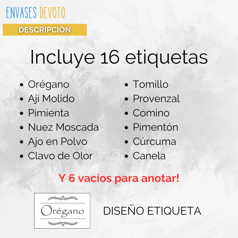 De regalo, te enviamos 16 etiquetas (12 preimpresas y 6 vacías).