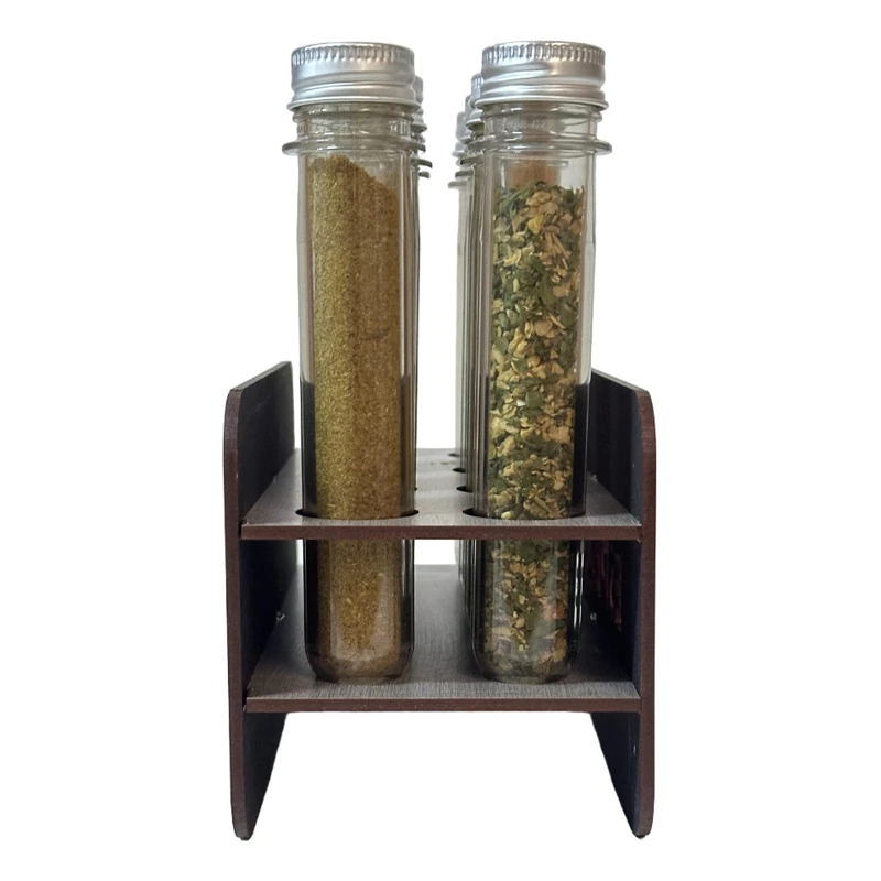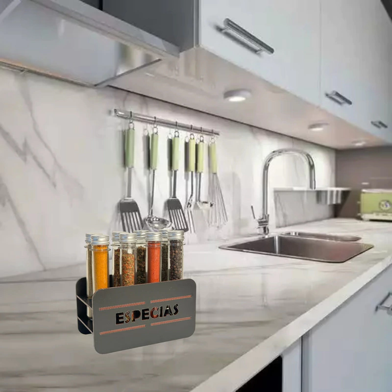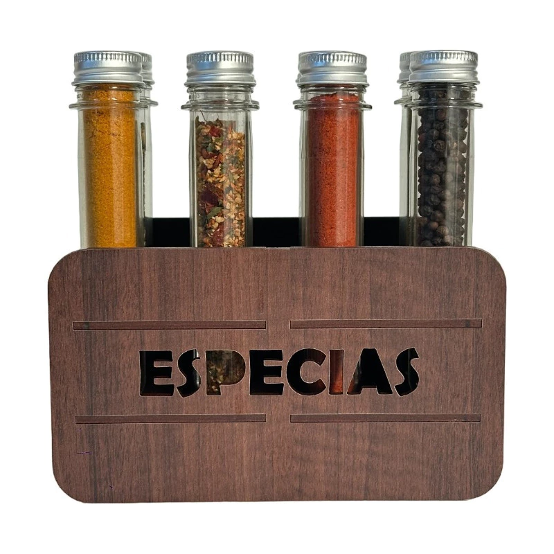 Nuestro especiero es el complemento perfecto para tu cocina. Con su diseño elegante y funcional, podrás tener tus especias favoritas siempre a mano. Su sistema de estante te permite tener una organización óptima, evitando que tus especias se mezclen o se pierdan. Además, cuenta con 8 frascos de plástico PET de 40 mL de capacidad, ideales para conservar tus especias frescas por más tiempo. Su estructura de madera le da un toque rústico y duradero, perfecto para cualquier estilo de cocina. No pierdas la oportunidad de tener este práctico especiero en tu hogar.