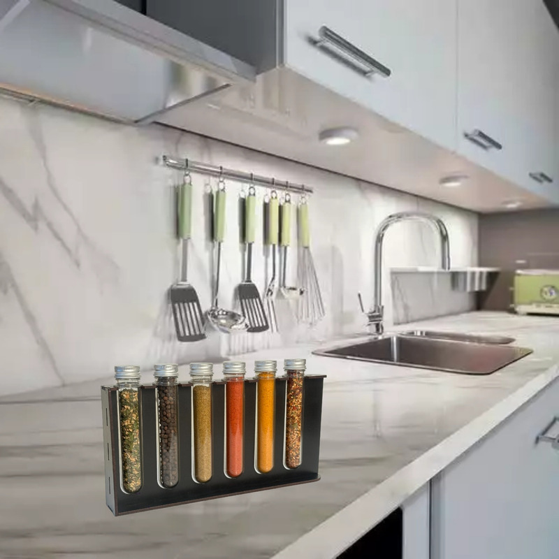 Nuestro especiero condimentero de mesa con 6 frascos es el complemento perfecto para tu cocina. Con su diseño moderno y funcional, podrás tener tus especias favoritas siempre a mano y organizadas. Fabricado con materiales de alta calidad, este especiero cuenta con una estructura de madera resistente y duradera. Los frascos para especias incluidos tienen una capacidad de 40 mL cada uno, ideales para almacenar tus condimentos preferidos.