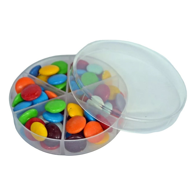 Pastillero Plástico fabricado en PS AI Y PP con tapa a presión y 6 divisiones fijas. Usos varios.