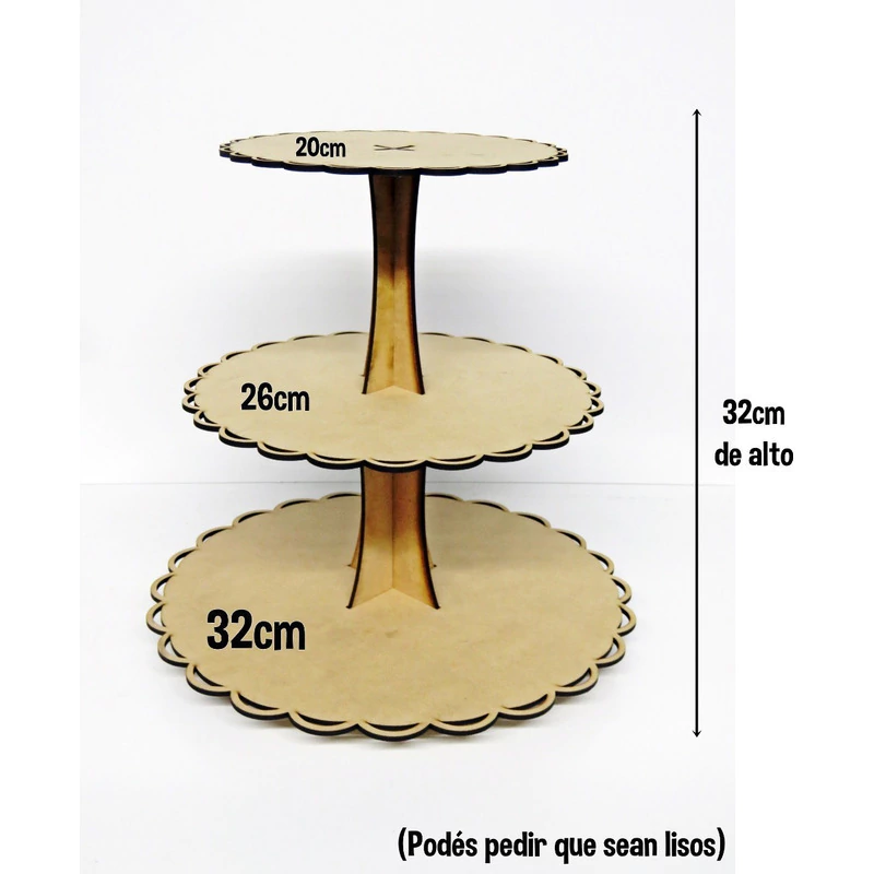 Medida: 32cm de altura. Las bandejas miden 32cm, 26cm y 20cm (de abajo hacía arriba)