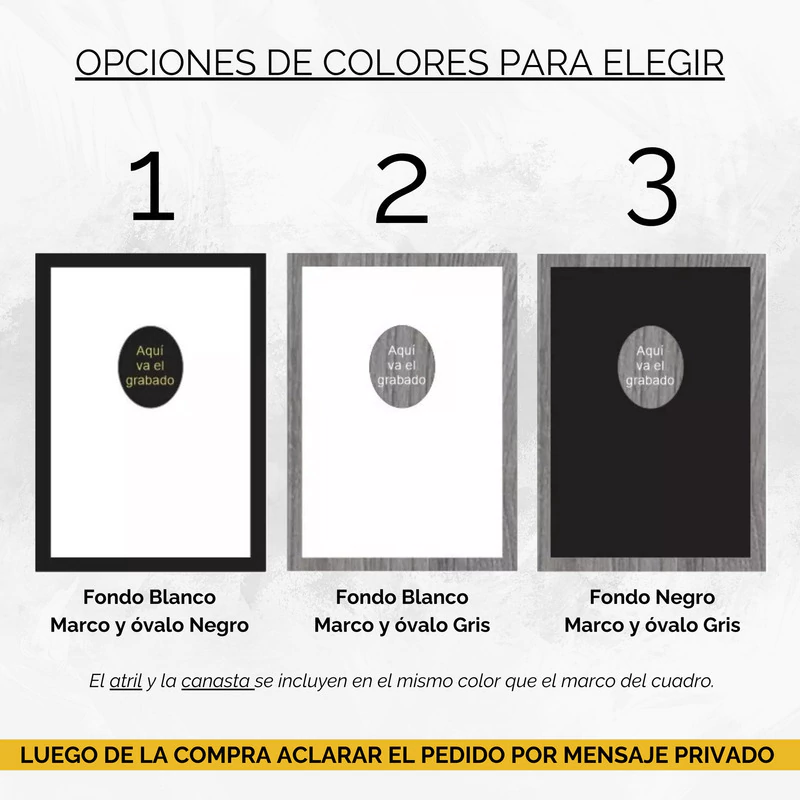 ¡Además, ofrecemos el servicio de personalización del óvalo con grabado láser! En las imágenes hay de ejemplos para que puedas elegir cómo personalizar tu cuadro de firmas.
