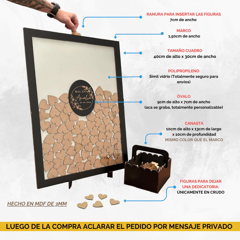 No pierdas la oportunidad de agregar un toque especial a tu evento con este Souvenir Cuadro De Firmas 40x30cm. ¡Haz que tus invitados se sientan parte de ese momento especial y crea recuerdos inolvidables!