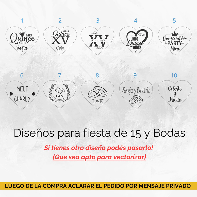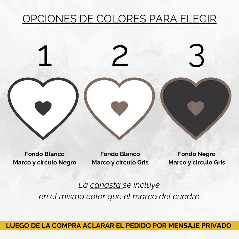 ¡Además, ofrecemos el servicio de personalización del Corazón con grabado láser! En las imágenes hay de ejemplos para que puedas elegir cómo personalizar tu cuadro de firmas.