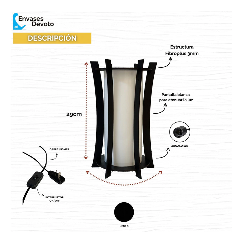 - Material: Madera 3mm (MDF) en color NEGRO.